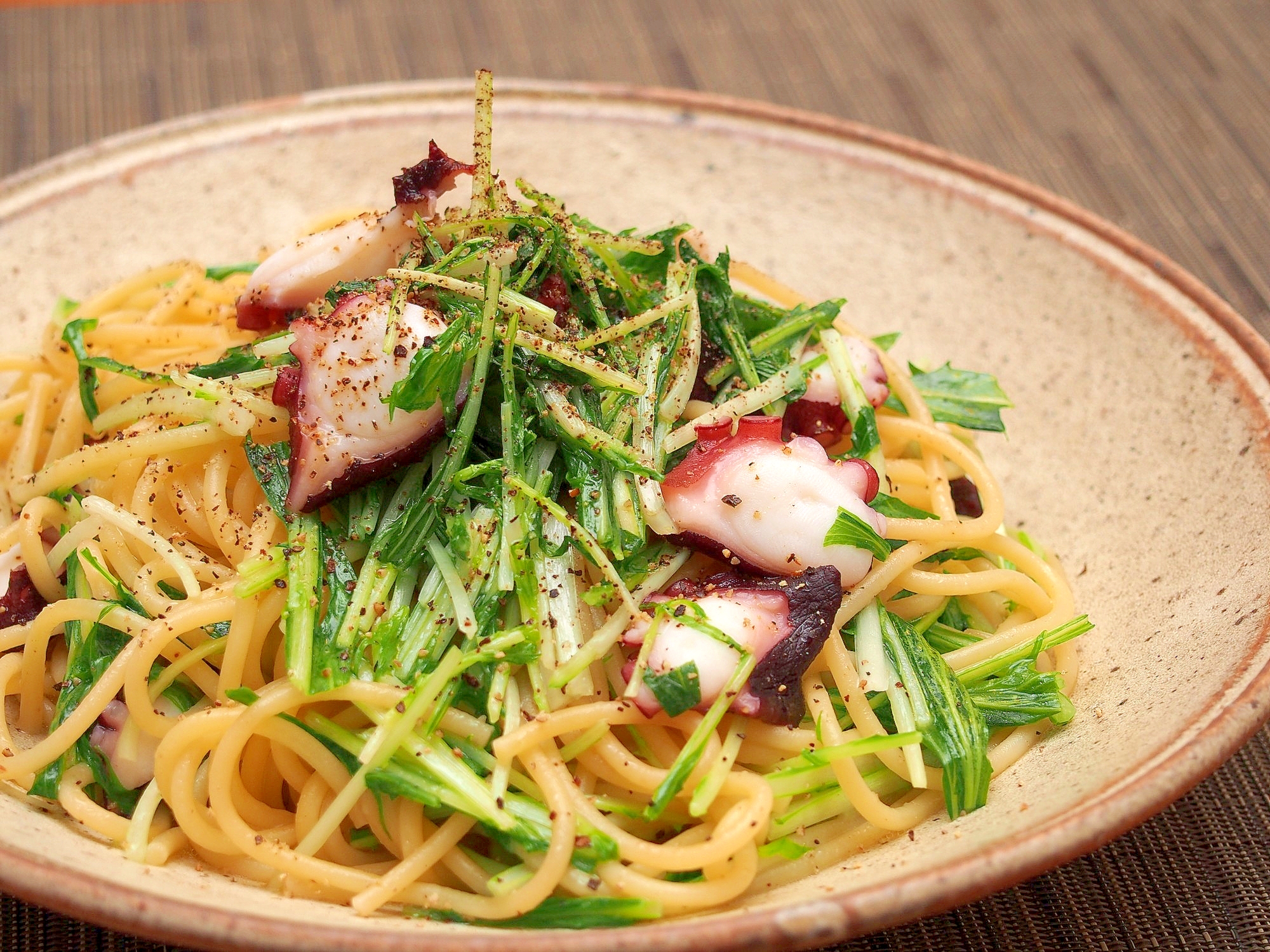 たこと水菜のスパゲティ レシピno 1047 ネスレ バランスレシピ