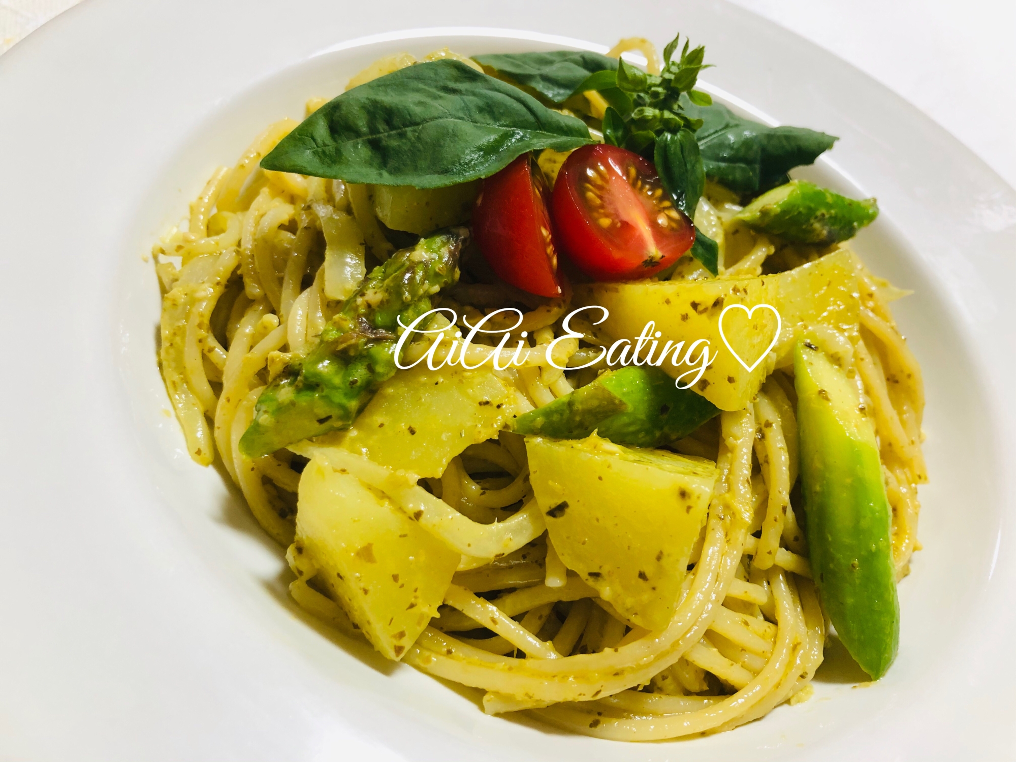 新ジャガのバジルソースパスタ