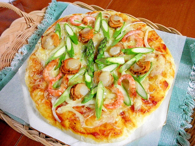 アスパラとシーフードピザ レシピ 作り方 By Toujunka 楽天レシピ