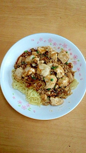 マーボーにハマっているのである。元々マーボーは好きだったのだが、わりと好みの味つけが手. 作り方 1 フライパンを弱~中火で熱し中華麺(焼きそば)を入れてほぐし全体に広げます。 フライ返しで押さえながら焼き色がつくまで両面約3分ずつ焼いたら、半分に分けてそれぞれ器に盛ります。 2 フライパンに麻婆豆腐の「調味ソース」と豆腐を入れ 弱~中火で煮立たせます。 3 軽く混ぜながら約2分煮込んで出来上がりです。 お好みで、みじん切りにした.