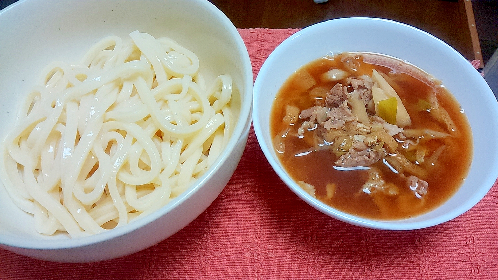 だしブレンドrecipe 肉汁つけうどん 白ごはん Com