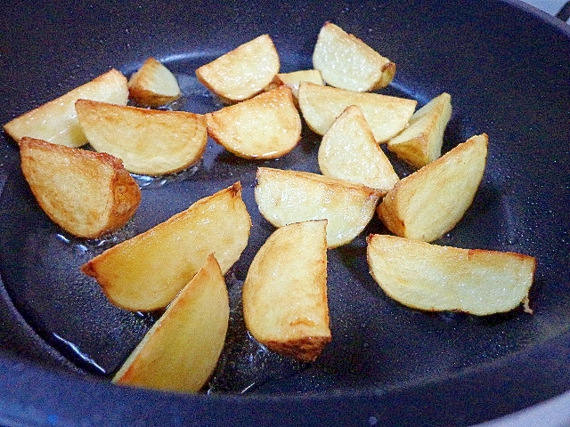 フライパンで超簡単 揚げない皮付きポテトフライの作り方 簡単レシピ だれウマ