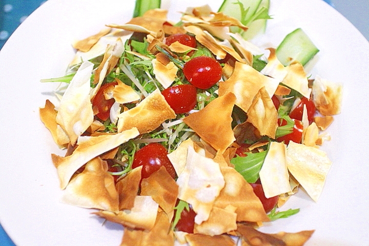 余ったワンタンの皮で 色々な食感が後を引くサラダ レシピ 作り方 By Seika A 楽天レシピ