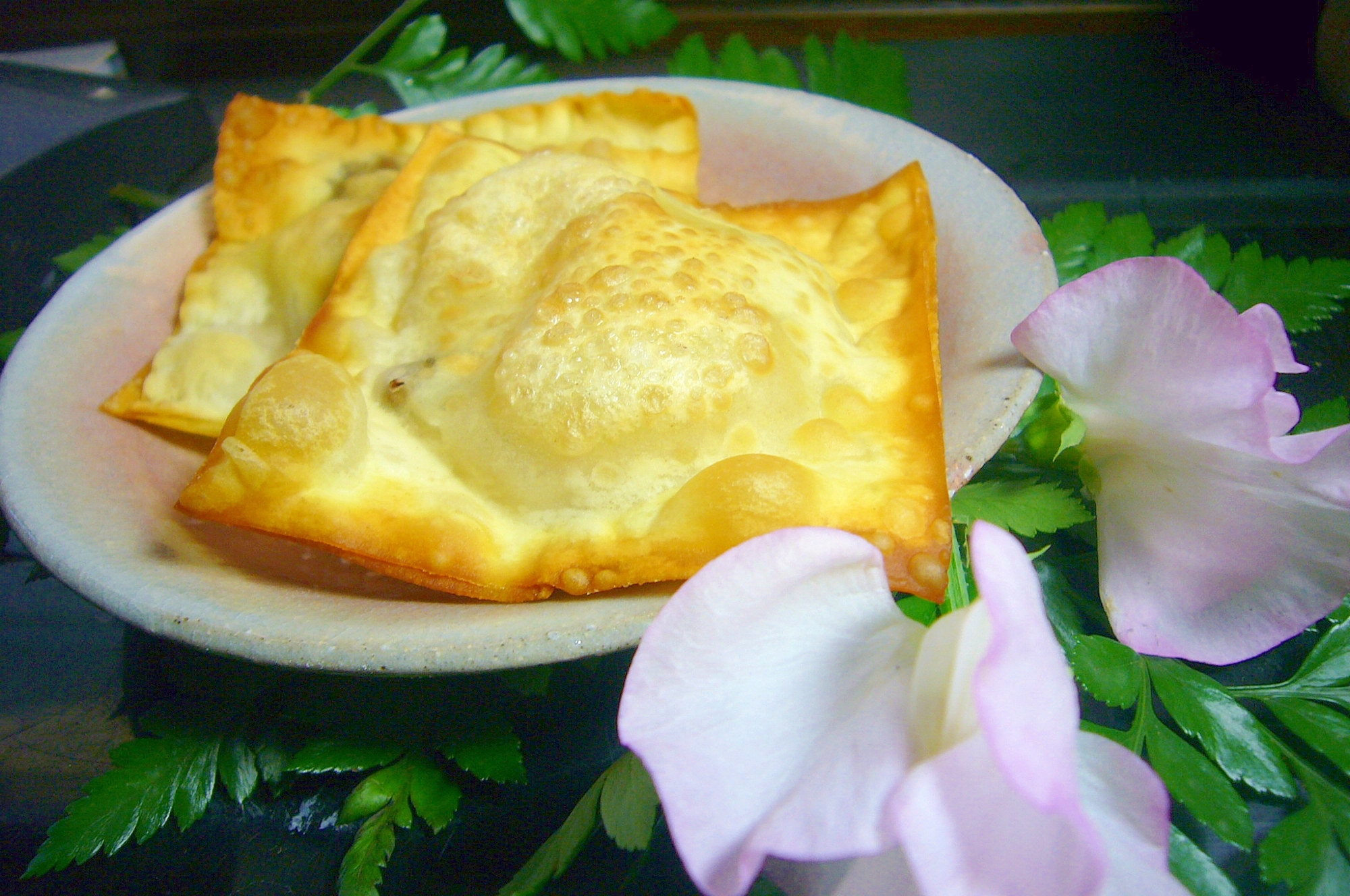 14/07/17 · 揚げワンタン 顧 興芳シェフのレシピ。揚げワンタンは、中国ではスナック感覚で食べられている料理です。 具を入れすぎると、肉に火が通る前に皮が焦げたり、皮がやぶたりするので注意しましょう。包むときは箸を使いリズミカルに。 お好みで甘酢ソースや辛子マヨネーズなどをつけ. 06/05/15 · 焼いて、揚げて、茹でて♪ワンタンの皮を使ったおしゃれなレシピ ワンタンスープや揚げワンタンなど、美味しいワンタンの料理は食べたいけれど、皮を全部使いきれないのが悩みのタネだという方はいませんか? もし余っても他のお料理においしく活用できるとあれば、悩むことなんてありませんよね♪ 今回は、ワンタンの皮を使ったおしゃれで美味しい. 揚げワンタンのレシピ シンプルな材料と簡単な手順で人気の、料理家・フルタヨウコさんに教わる定番レシピの連載です。 今回ご紹介するのは「フライパンひとつ」で作れて、大人も子供も大満足の揚げワンタンのレシピ。 ひき肉をこねずに皮で包むだけ.