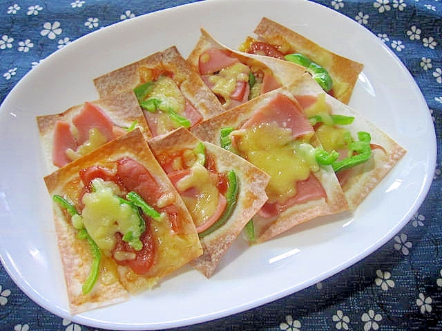 ワンタンの皮でおつまみピザ レシピ 作り方 By けいちゃん088 楽天レシピ