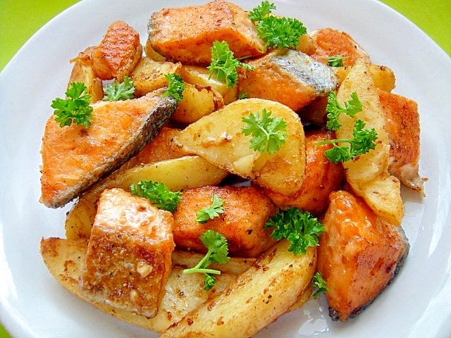 鮭と冷凍ポテトのオイスターマヨ炒め レシピ 作り方 By Mint74 楽天レシピ