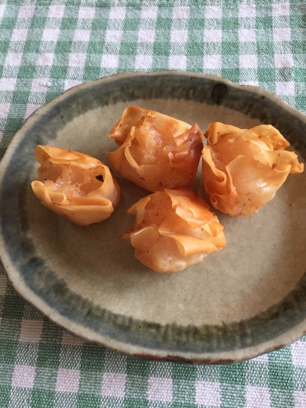 シュウマイの皮で兜の形のチーズ揚げ おうちのみ大使 あっちゃん のブログ