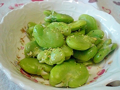 そら豆のごま油炒めの作り方 皮ごと焼いておつまみに最高のレシピ Life Net