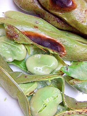 ビールのおつまみに まるごと焼きそら豆 くぅのおうち居酒屋