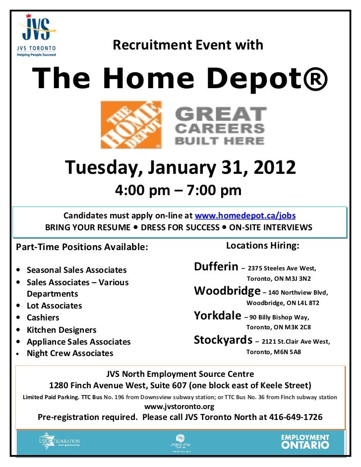 E X T E R N A L Home Depot Job Fair Flyer J V S North Keele A