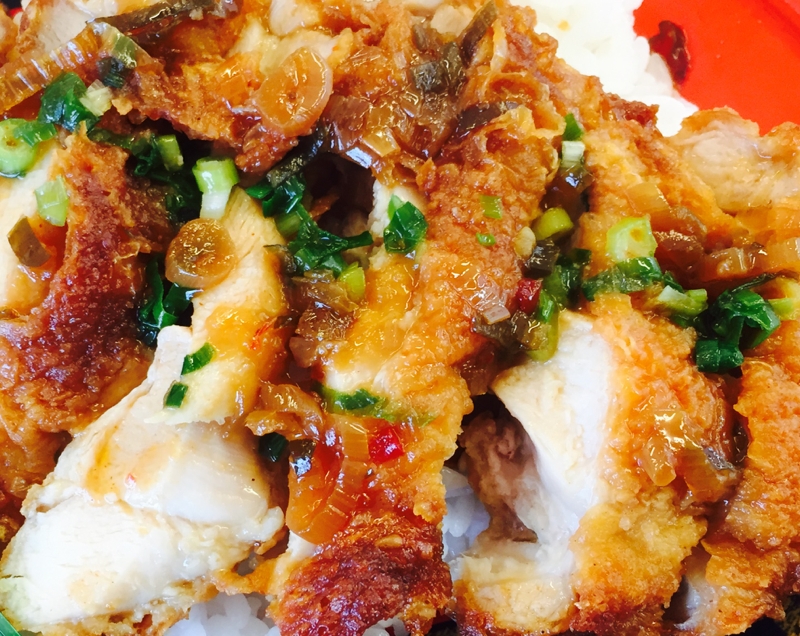 アレンジ 鶏ムネ肉唐揚げの油淋鶏風丼 レシピ 作り方 By たかまさ 楽天レシピ